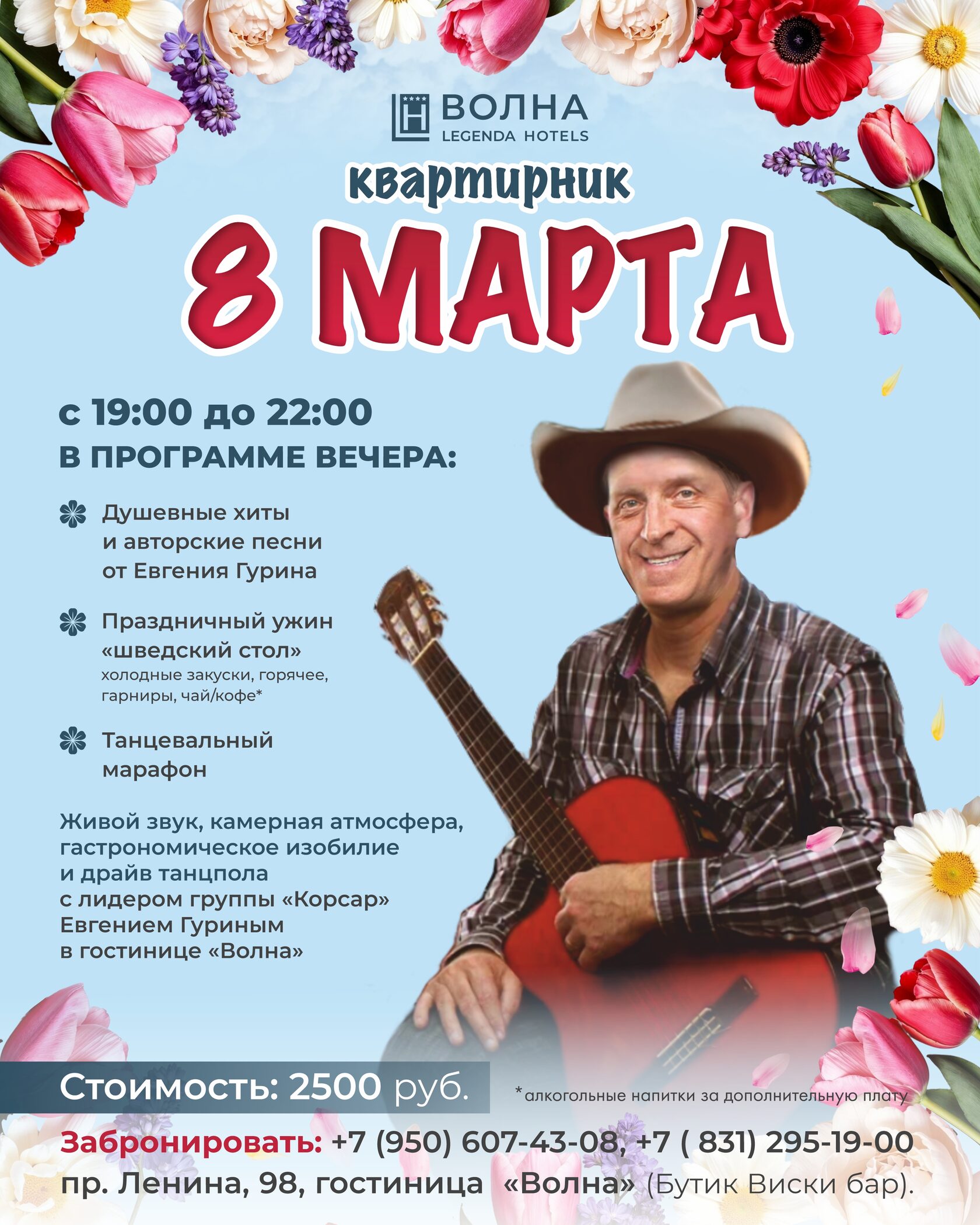 ✨ Вас ждут живой звук, камерная атмосфера, гастрономическое изобилие, и драйв танцпола с лидером группы "Корсар" Евгением Гуриным🎤🎶